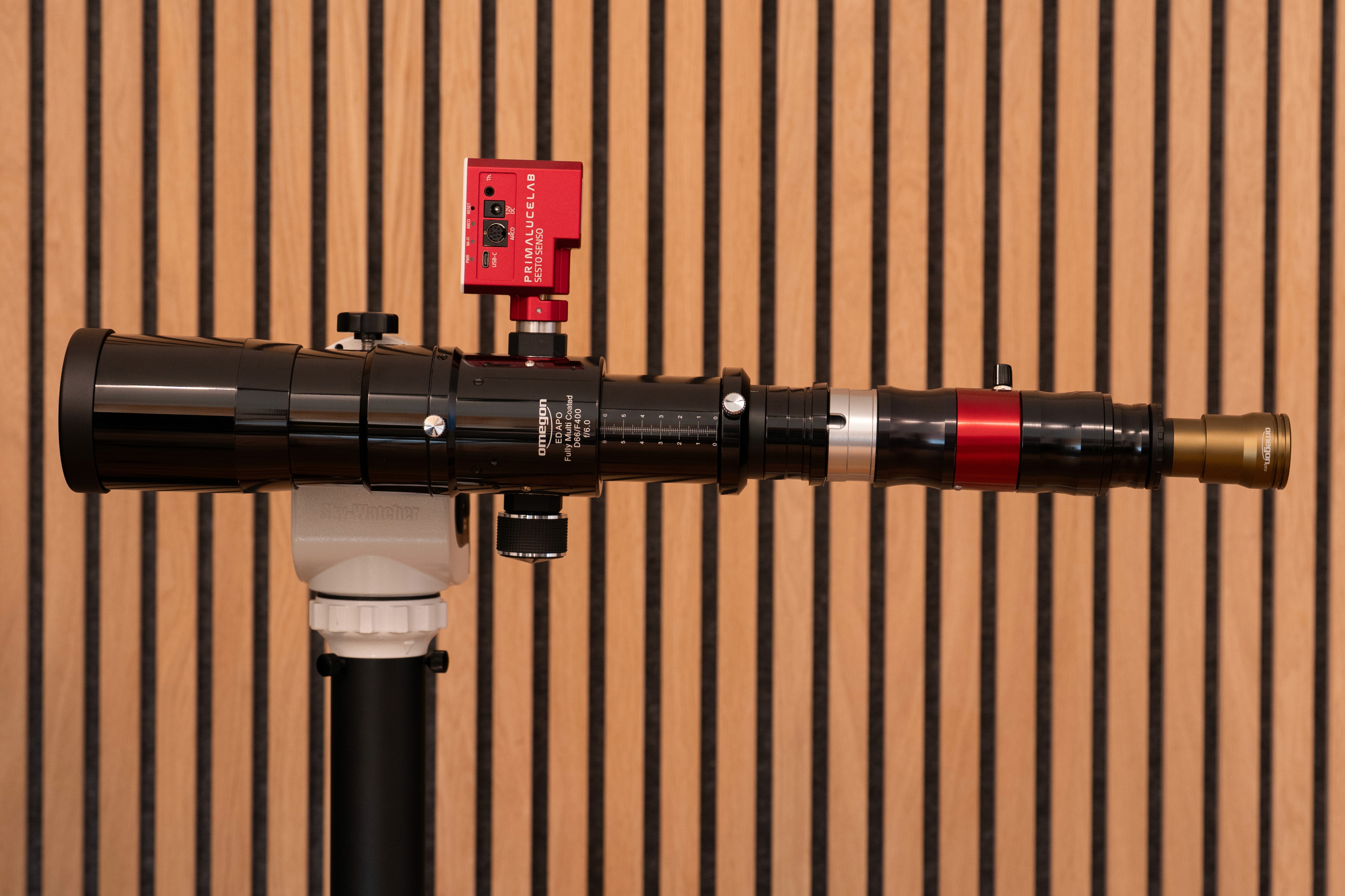 This high-sensitivity monochrome camera pairs perfectly with the refractor and the DayStar Quark. Its modern Sony sensor delivers clean data with low noise, allowing extremely detailed images of prominences, filaments, and active regions.