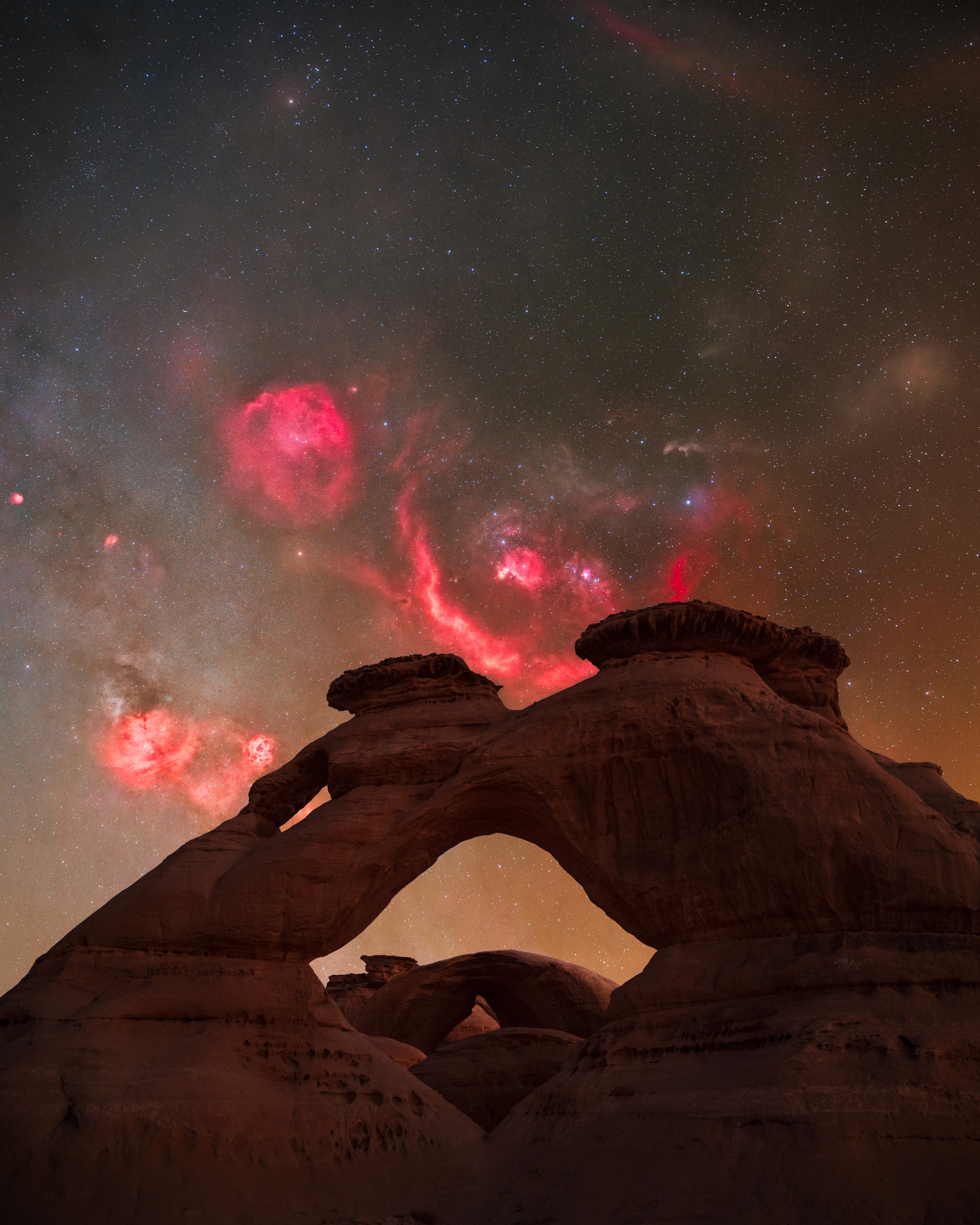 Explore the Wonders of AlUla, Al Disah, and Tabuk. Journey through dramatic desert landscapes, towering rock formations, and natural arches carved by time. Capture the beauty of Hegra, Saudi Arabia’s first UNESCO World Heritage Site, where ancient tombs stand silent beneath the stars. From vast canyons to pristine dark skies, this is a photographic adventure through the heart of Arabia’s timeless desert.